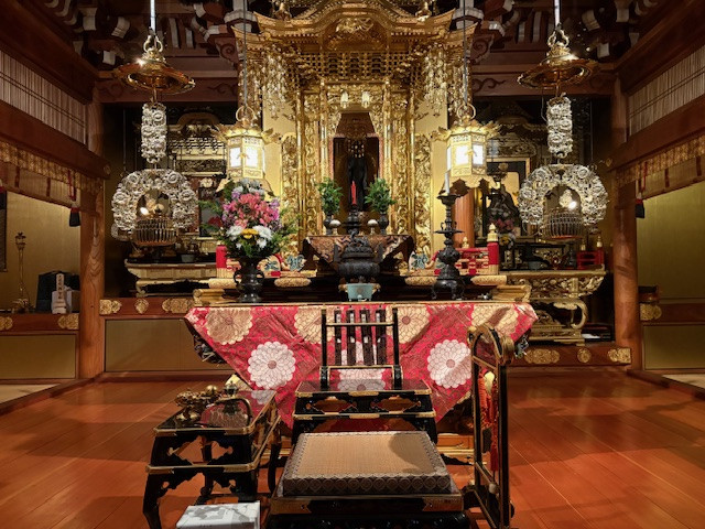 真西に沈む夕日は全てを山の木々も屋根も建物も照らして黄金色に輝かせてくれます。私たちが阿弥陀様の光に照らされて本来の命の輝きを取り戻しているかのように。